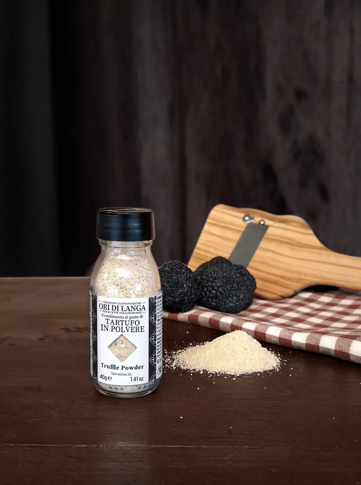 poudre de truffe, Truffle Powder, condiment à la truffe, truffe noire d’été, Ori di Langa, assaisonnement truffé, poudre de truffe, épicerie fine italienne, truffe en poudre, assaisonnement gourmet, truffe lyophilisée