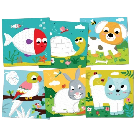 L’enfant utilise ses doigts pour tamponner de la peinture sur les planches illustrées d’adorables animaux. Les encres lavables, douces et sécurisées permettent une première expérience sensorielle de la peinture sans stress pour les parents ! Caractéristiques