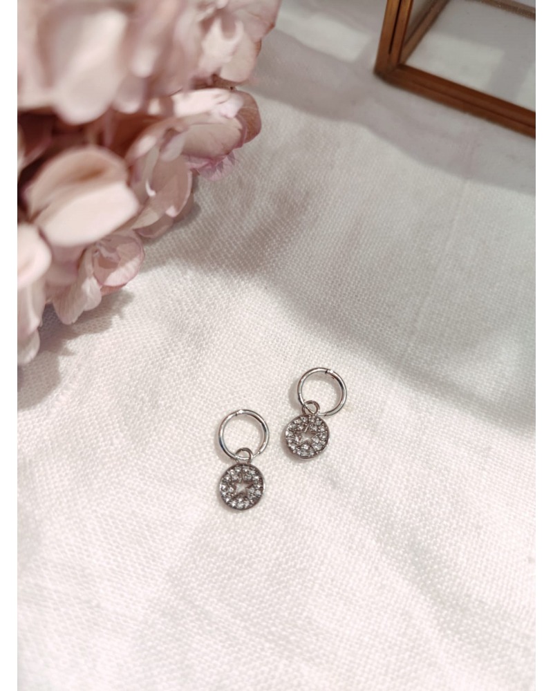 Boucle D'Oreille Mini Créole étoile Strass Argentée