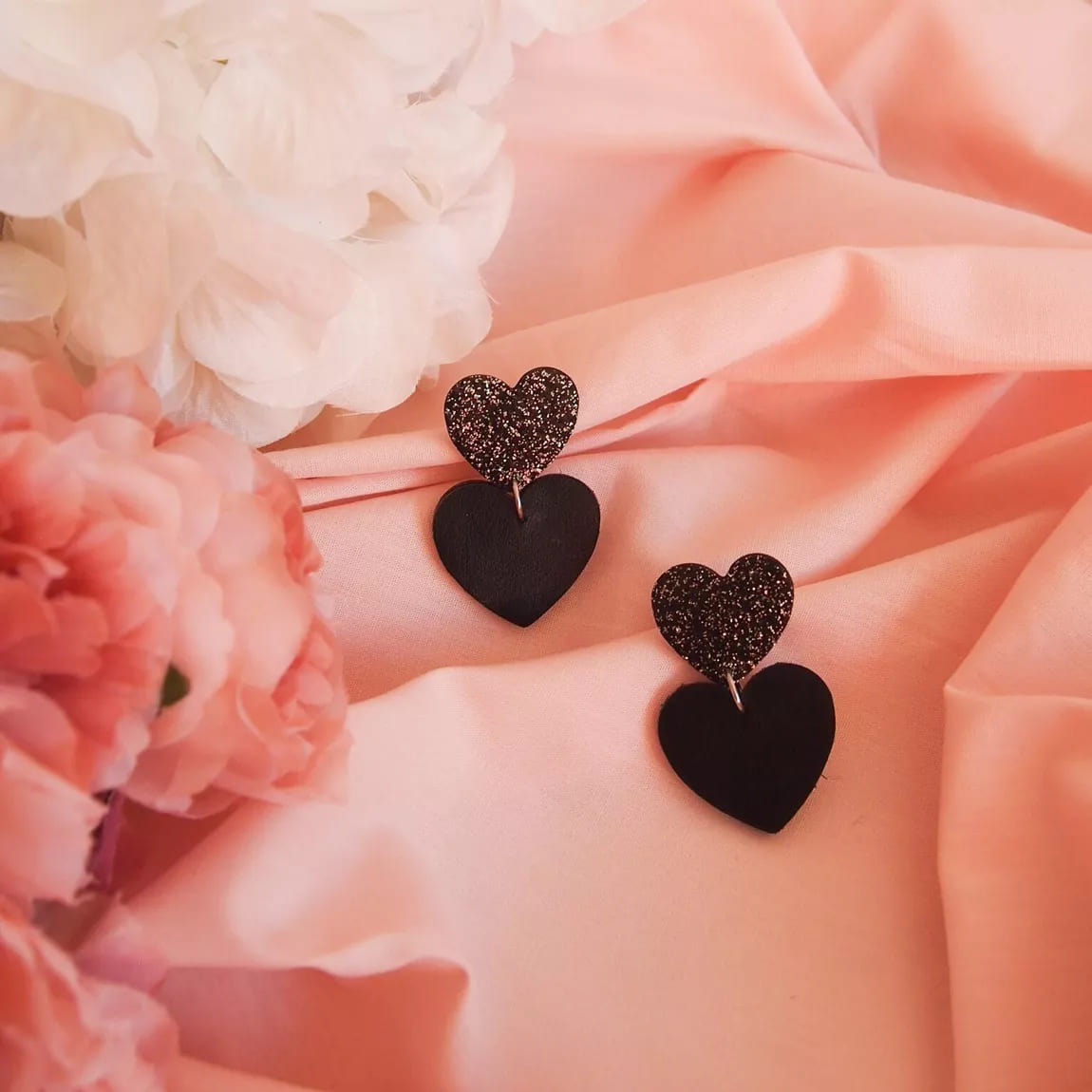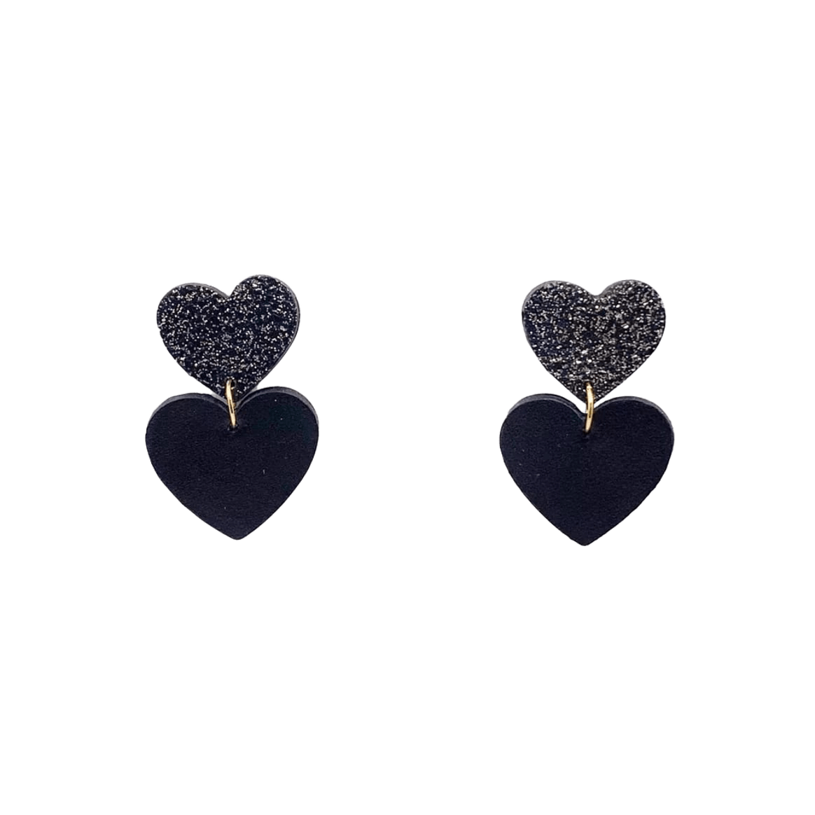 Boucles d'oreilles en cuir noir double cœur - Manali
