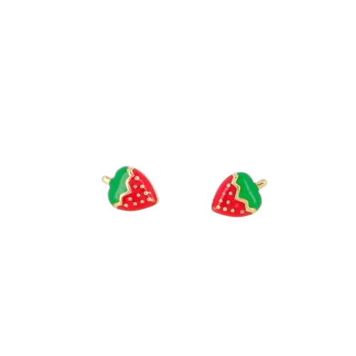 Boucles d’oreilles à puce en acier inoxydable composées d’un pendentif fraise en émail.