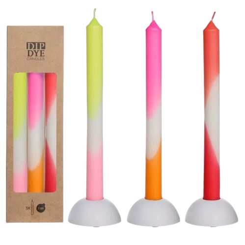 Cet ensemble de bougies Dip Dye dans la combinaison de couleurs rose-orange-rouge-jaune ajoute une touche ludique et colorée à n’importe quel intérieur. D’une hauteur de 24 cm et d’un diamètre de 2.D’une longueur de 2 cm, ces bougies sont idéales pour créer une ambiance joyeuse et énergique. Fabriquées à partir de cire de haute qualité, elles brûlent uniformément et donnent une douce lueur. Combinez ces bougies avec nos bougeoirs élégants ou nos vases en verre pour un ensemble dynamique et élégant, parfait pour les occasions festives ou pour ajouter une touche ludique à votre décoration quotidienne.