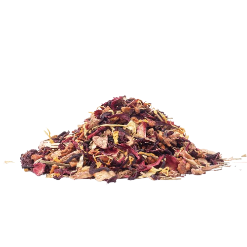 Composition : Hibiscus, Gingembre, Pomme, Mûre, Citronnelle, Arôme naturel de Framboise, Stevia bio, Souci, Framboise. 100% des ingrédients sont issus de l’agriculture biologique.
