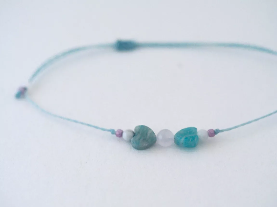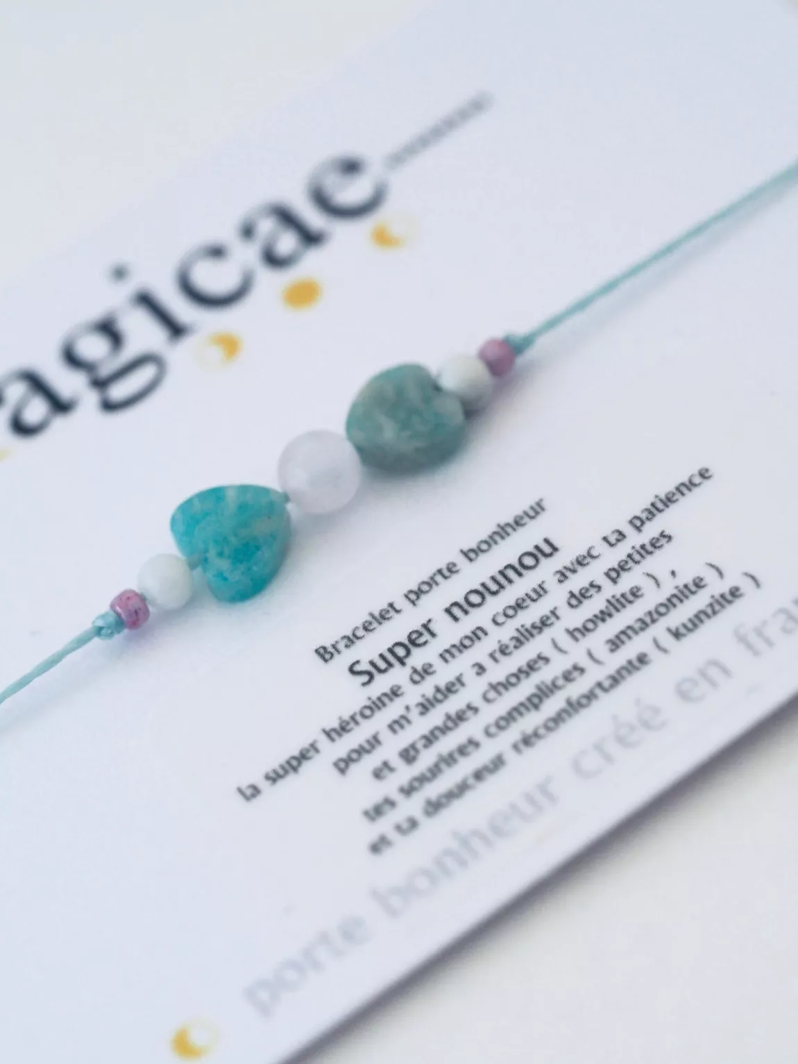 La super héroïne de mon cœur avec ta patience pour m’aider à réaliser des petites et grandes choses ( howlite ) tes sourires complices ( amazonite ) et ta douceur réconfortante ( kunzite )
