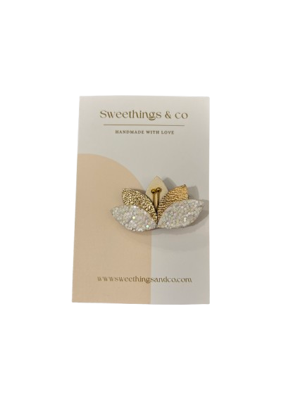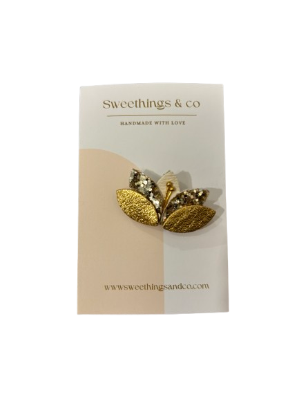 Broche Cuir Fleur – Doré & Pailleté - Sweethings & Co