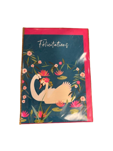 Douce et raffinée, cette carte de félicitations met en scène un couple de cygnes gracieux, symbole d’amour, d’unité et de nouveaux départs. Parfaite pour célébrer une naissance, un mariage, un engagement ou toute autre jolie nouvelle
