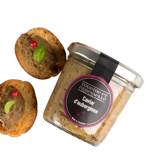Le caviar d’aubergines est un mets méditerranéen typique, qui se déguste à l’apéritif. Les aubergines sont grillées au four puis réduites en purée. Ce caviar d’aubergines est préparé avec des aubergines de Provence récoltées à pleine maturité. À déguster frais en apéritif sur du pain grillé.