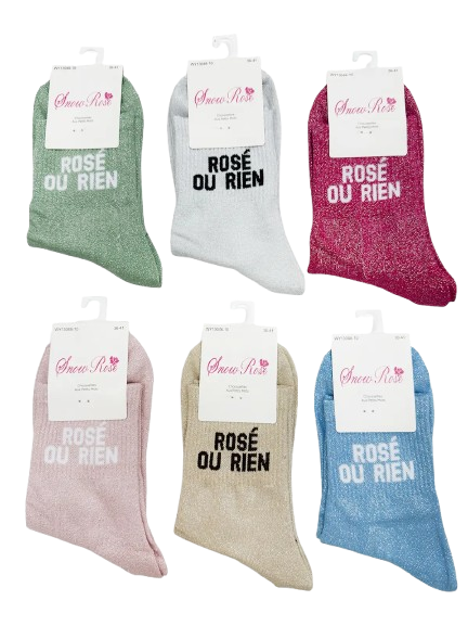Chaussettes à paillettes - message "Rosé ou rien"