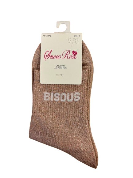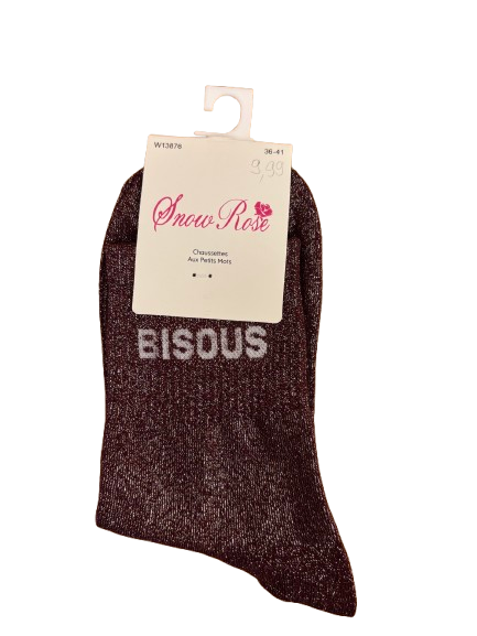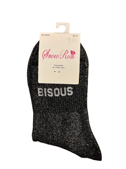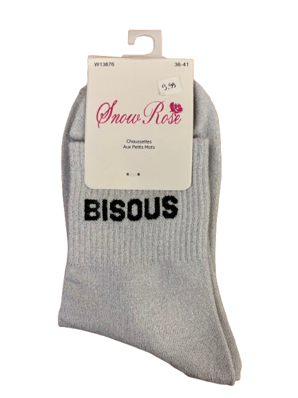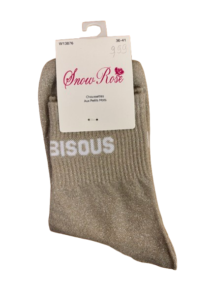 Chaussettes aux petits mots brillantes (fils argentés) – « BISOUS »