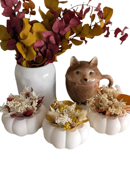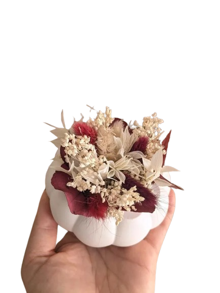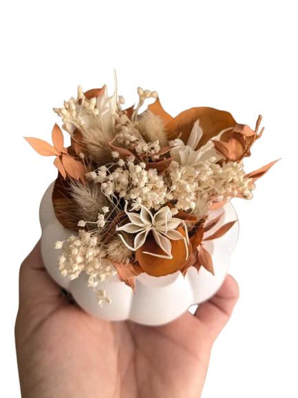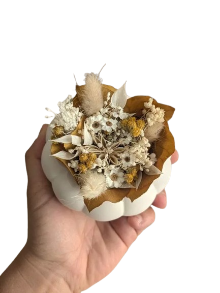 Citrouille blanche en jesmonite + Fleurs Séchées