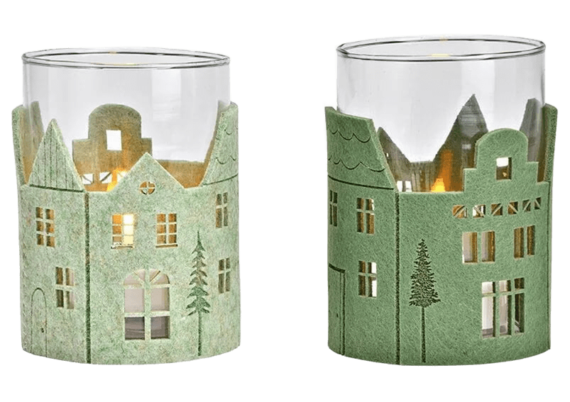 Photophore maison lanterne en verre, vert clair ou foncé