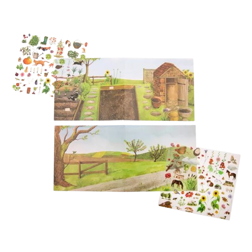 Ce kit comprend deux décors champêtres à personnaliser, parfaits pour créer des scènes inspirées du potager, des fleurs ou des animaux du jardin. Les enfants peuvent également s’amuser à décorer leurs cahiers, enveloppes, boîtes ou cartes, pour un résultat doux, naturel et personnalisé.