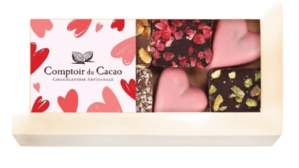 Etui coeur – Assortiment praliné feuilleté 75g – Comptoir du Cacao