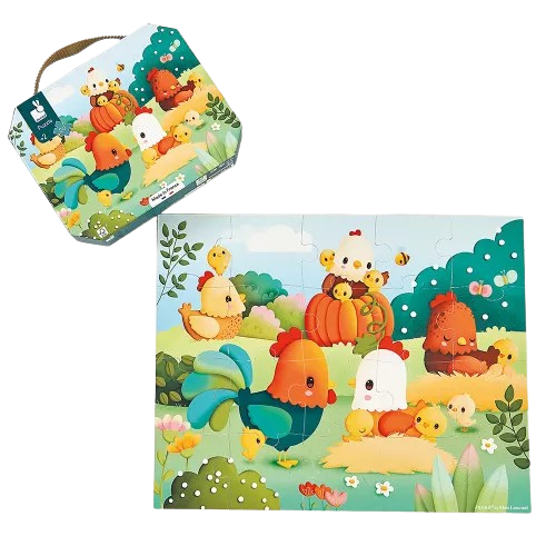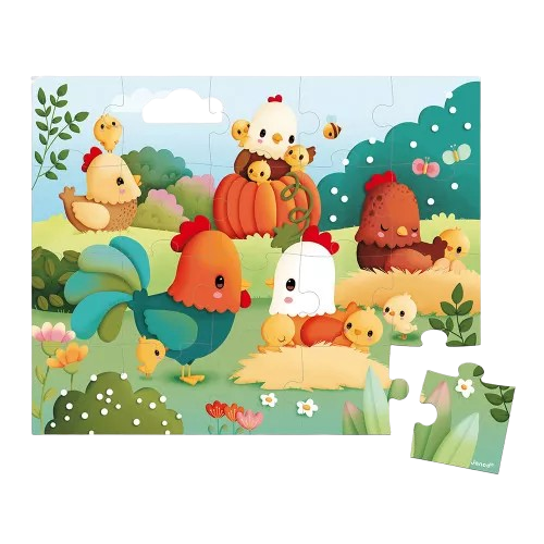 Puzzle de 20 pièces sur le thème de la basse-cour, fabriqué en France