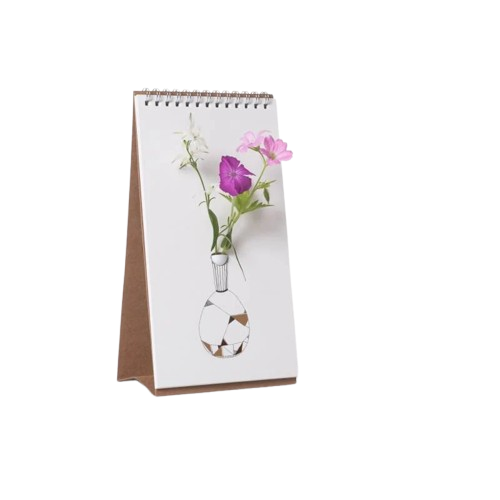 Le vase flip soliflore est une création ingénieuse qui réinvente la manière d’exposer les petites fleurs du quotidien. À la fois décoratif et fonctionnel, ce vase flip soliflore associe un bloc‑notes imprimé à un petit contenant en plastique dissimulé à l’arrière, permettant d’accueillir de véritables fleurs fraîches. Ainsi, chaque page devient un décor différent, que vous pouvez choisir selon votre humeur, votre intérieur ou la saison.