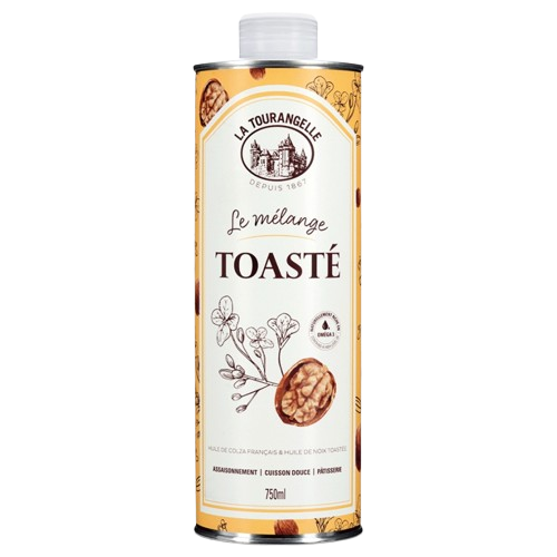 Le Mélange Toasté (700 ml) est une association de 4 huiles végétales (Huile de Colza, huile de Noix, huile de Tournesol, huile de Lin). Au délicieux goût de noix toastées.