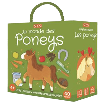 Apprends un tas des choses sur le monde des poneys ! Feuillète le livre, construis le puzzle et apprends de nombreuses informations sur cette espèce curieuse et sympathique.