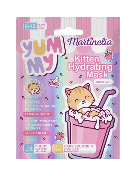 Masque hydratant pour enfants avec une tête de chat. Indiqué pour les enfants de 8 à 12 ans. Une seule dose.