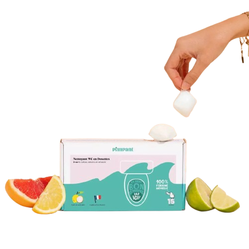 Découvrez notre nettoyant WC écologique qui coupe la chique au plastique ! Composé d’ingrédients 100% d’origine naturelle, doté un film biodégradable et d’un parfum agrumes pétillant, ce nettoyant WC sous forme de dosette nettoie, détartre et rafraîchit. Efficace en 15 min seulement, il est aussi compatible avec les fosses septiques.