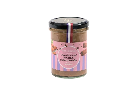 Pâte à tartiner Chocolat au lait, Amandes et Crêpes dentelle - 220g - Bisch de Bruche
