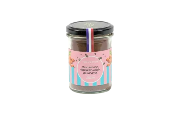 Pâte à tartiner Chocolat noir, Amandes et éclats de Caramel - 220g - Bisch de Bruche