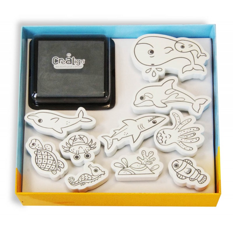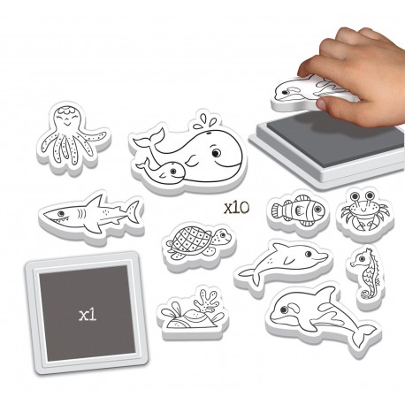 Un coffret créatif adorable pour faire découvrir l’univers marin aux enfants tout en stimulant leur imagination, avec 10 tampons en mousse et un encreur lavable à l’eau.
