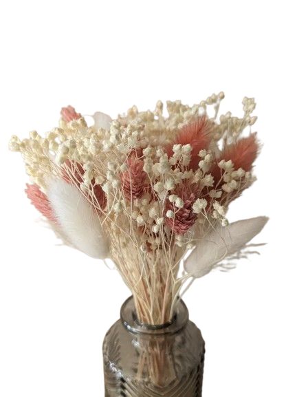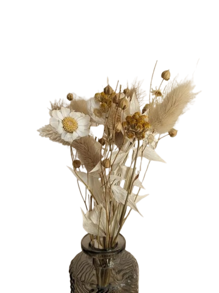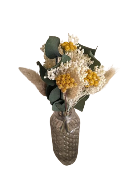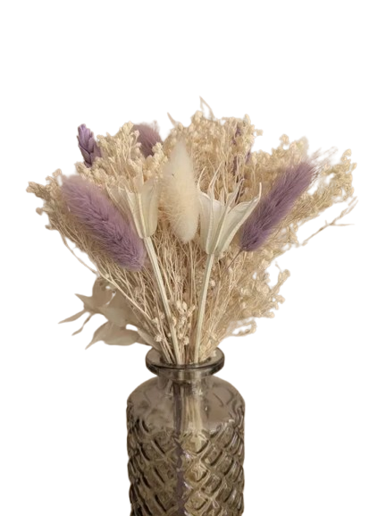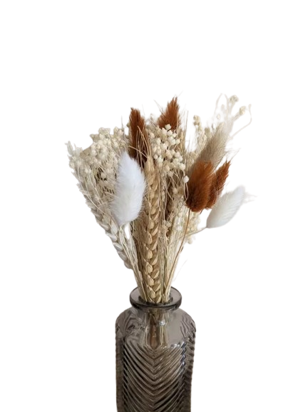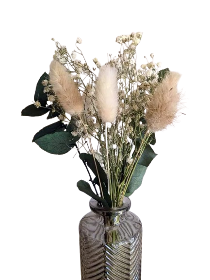 🌿 Découvrez nos bouquets de fleurs séchées, composés de variétés naturelles comme le lagurus, le blé, l’avoine, l’eucalyptus ou le gypsophile.