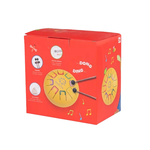 Le Petit tambour à languettes Popipop Moulin Roty est un jouet musical ludique et captivant, parfait pour éveiller les sens des plus petits. Avec ses couleurs vives et son design attrayant, ce tambour fait partie de la collection Popipop de Moulin Roty, qui se distingue par ses motifs joyeux et modernes. Ce tambour est conçu avec des languettes en métal qui émettent des sons amusants lorsque l’enfant les frappe, offrant une expérience sonore agréable et stimulante. Sa prise en main est facile grâce à ses petites dimensions, idéales pour les petites mains. Il est aussi accompagné d’un bâtonnet, permettant à l’enfant de taper sur le tambour et ainsi développer sa coordination, son rythme et sa motricité fine