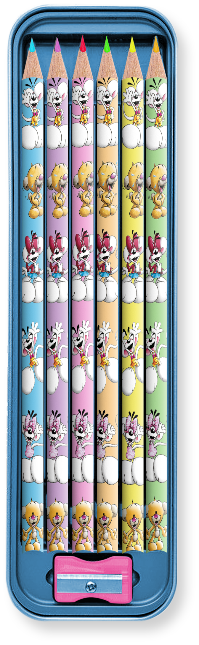 plumier métal 6 crayons de couleurs diddl, diddl, papeterie originale, fournitures scolaires diddl, idée cadeau diddl