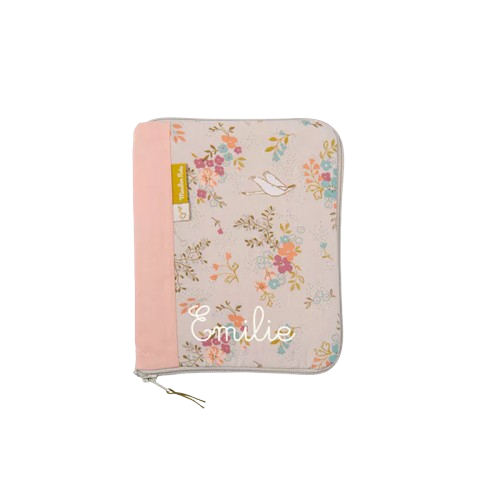 Un protège carnet de santé à broder avec un imprimé fleuri, idéal pour conserver tous les documents liés à la santé de bébé. Personnalisable avec un prénom, il s’adapte aux carnets de santé de taille standard.