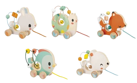 Quel que soit votre choix parmi les 5 modèles disponibles (ourson, escargot, renard, lapin, oiseau), chaque adorable mini looping à promener fera la joie de votre enfant. Chaque animal est équipé d'un looping en métal avec 4 perles de différentes couleurs dont une associée à l’animal. Une ficelle permet de promener son animal partout, idéal pour développer la motricité fine et global.