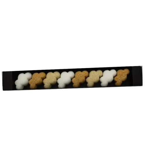 Pour accompagner le café du matin, un café gourmand, pour décorer une table, ou tout simplement pour offrir : la Réglette nuages est composée de 8 petits sucres, tous en sucre de canne : du sucre de canne blanc, du sucre de canne roux clair et roux foncé. La couleur du sucre est apportée par les extraits végétaux naturellement présents dans la canne à sucre. Plus le sucre est foncé, plus il contient d’extraits végétaux. Ce qui lui apportera une couleur ambrée et une note de caramel