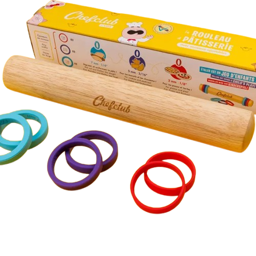 Pensé pour les petits mains, les enfants (4-10 ans) n'auront plus de mal à étaler la pâte eux-même comme des chefs. Le rouleau fonctionne avec un système d'anneaux amovibles pour gérer l'épaisseur des pâtes.