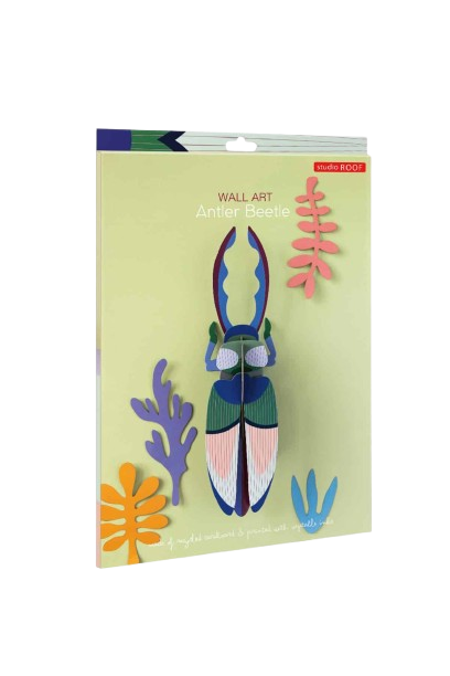 Dans la vraie vie animale, ils se cachent sous les feuilles et sous les branches, mais ces coléoptères flamboyants et colorés – de tous les coins du monde – ont l’air de sortir d’un podium. Donnez-leur une place parmi vos trésors artistiques, accrochez-les au mur, laissez-les déambuler sur votre table et créez votre propre histoire d’insectes.