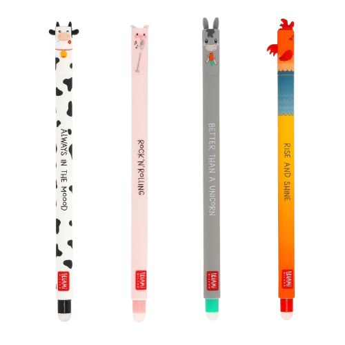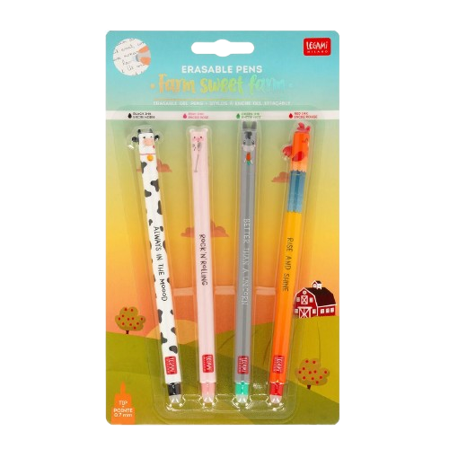 Set de 4 Stylos à Encre Gel Effaçable - Animaux de la ferme - Legami