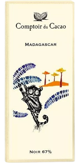 Les fèves de cacao sont originaires de Madagascar. Ce chocolat représente le berceau des épices et des parfums. Cette île du baobab produit un cacao aux notes de tabac, framboise et myrtille.À conserver dans un endroit frais (14 à 17°C) et sec à l’abri de la lumière et des odeurs.